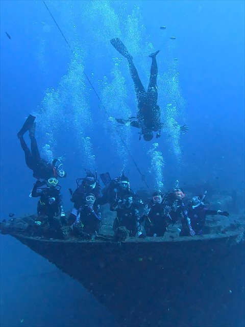 ハワイダイビング合宿第6班、アントレランドのチーム・チャレキャン最終日は、全員揃ってのファンダイビング。水中での記念撮影も余裕で決めることができました。
