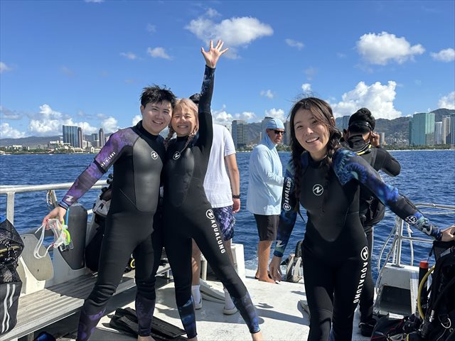 新しいオープンウォーターダイバーも誕生しています。常夏のハワイで今日も楽しいダイビングでした!!