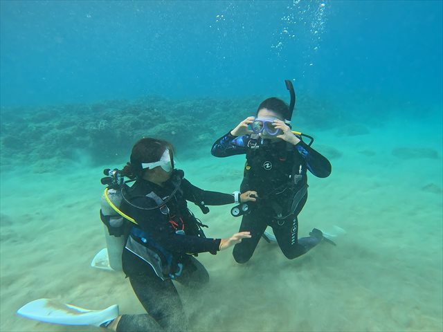 器材のセットアップから水中での問題解決まで、ダイビングを安全に楽しむためのスキルを身に付けていただきます。オープンウォーターダイバー合格おめでとうございます!!