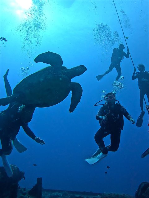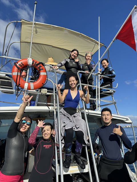 2025/09/24眩しい日差しの中、皆様揃ってのボートダイビングでした。新しいアドバンスドオープンウォーターダイバーも誕生しています。Congratulations!!