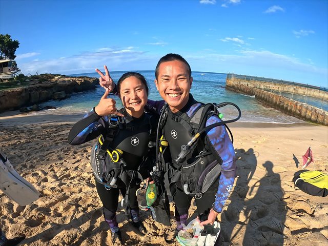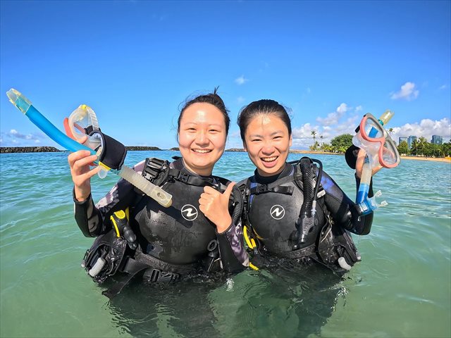 本日のビーチダイビングは、オープンウォーターダイバーとアドバンスドオープンウォーターダイバーコースの講習でした。ハワイの海から最新のオープンウォーターダイバーが誕生しています。おめでとうございます!!