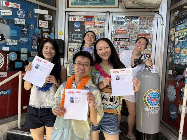 おめでとうございます!! ハワイの海から最新のPADIダイバーが生まれました!!