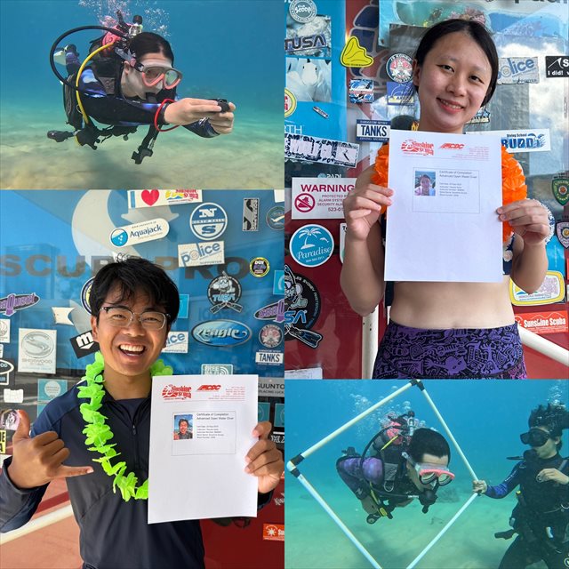 おめでとうございます!!元気な若者たちが揃ってオープンウォーターダイバーになりました。今後は世界の海を潜りまくってください!!