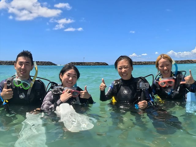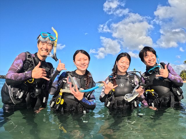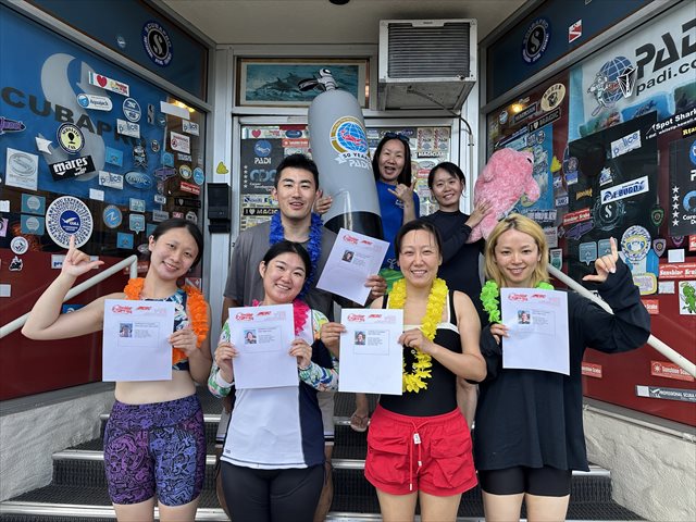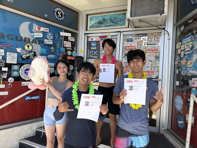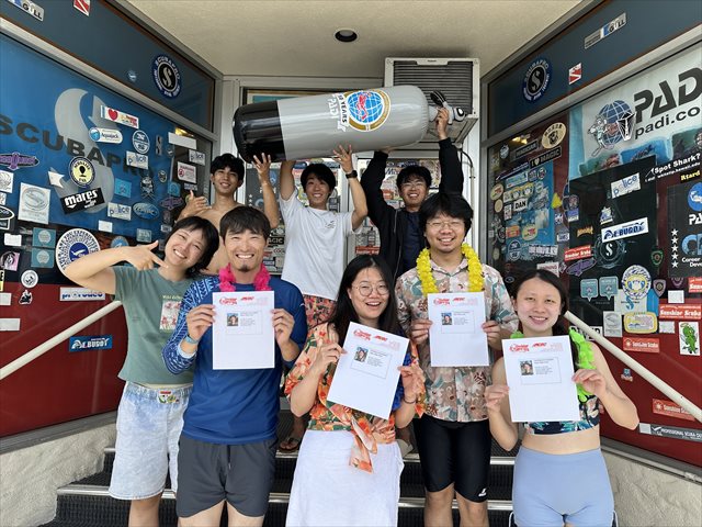 おめでとうございます!!元気な若者たちが揃ってオープンウォーターダイバーになりました。今後は世界の海を潜りまくってください!!