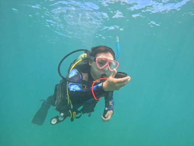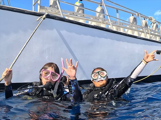 水中でも仲良く、楽しくダイビング。お二人そろってダイバーになりました。これからもずーっと一緒にダイビングを続けてください!!