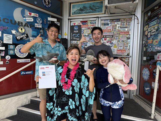 激レアなハワイアンモンクシールにも逢えて忘れられないダイビングでしたね。これからのダイビングでもたくさんの水中生物との出会いを楽しんでください!! オープンウォーターダイバー合格おめでとうございます!!
