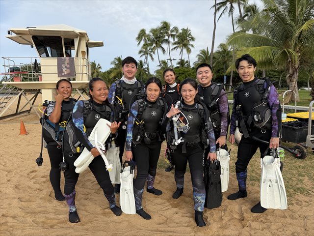 華やかな仲間がハワイに集合!元気イッパイにオープンウォーターダイバーのライセンコースがスタートしました!!