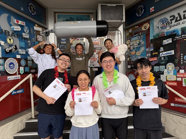 とても和気あいあいで楽しいクラスでした。全員無事にPADIダイバーになって、これからは世界中の海に旅立っていきます。オープンウォーターダイバー合格おめでとうございます!!
