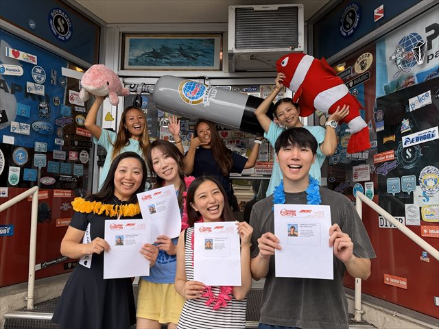 ナイス・チームワークでした。ハワイの海でまた1つのダイバーの輪が広がりましたね。オープンウォーターダイバー合格おめでとうございます!!
