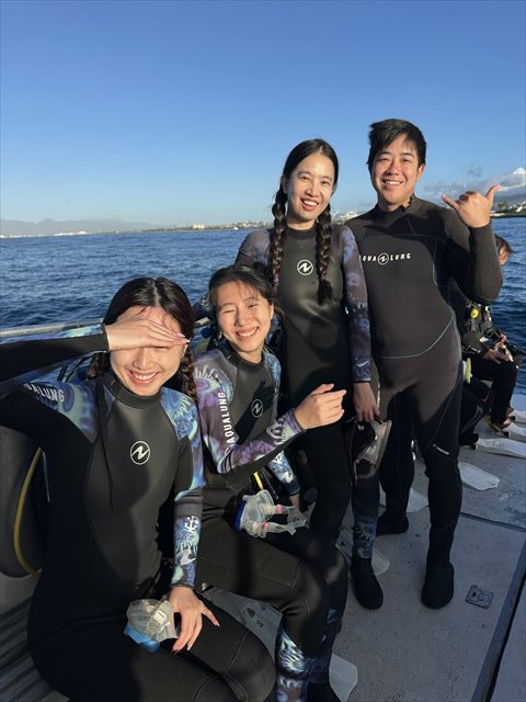ハワイアンブルーの海がいいですね! ボートでのファンダイビングをエンジョイしていただきました!!